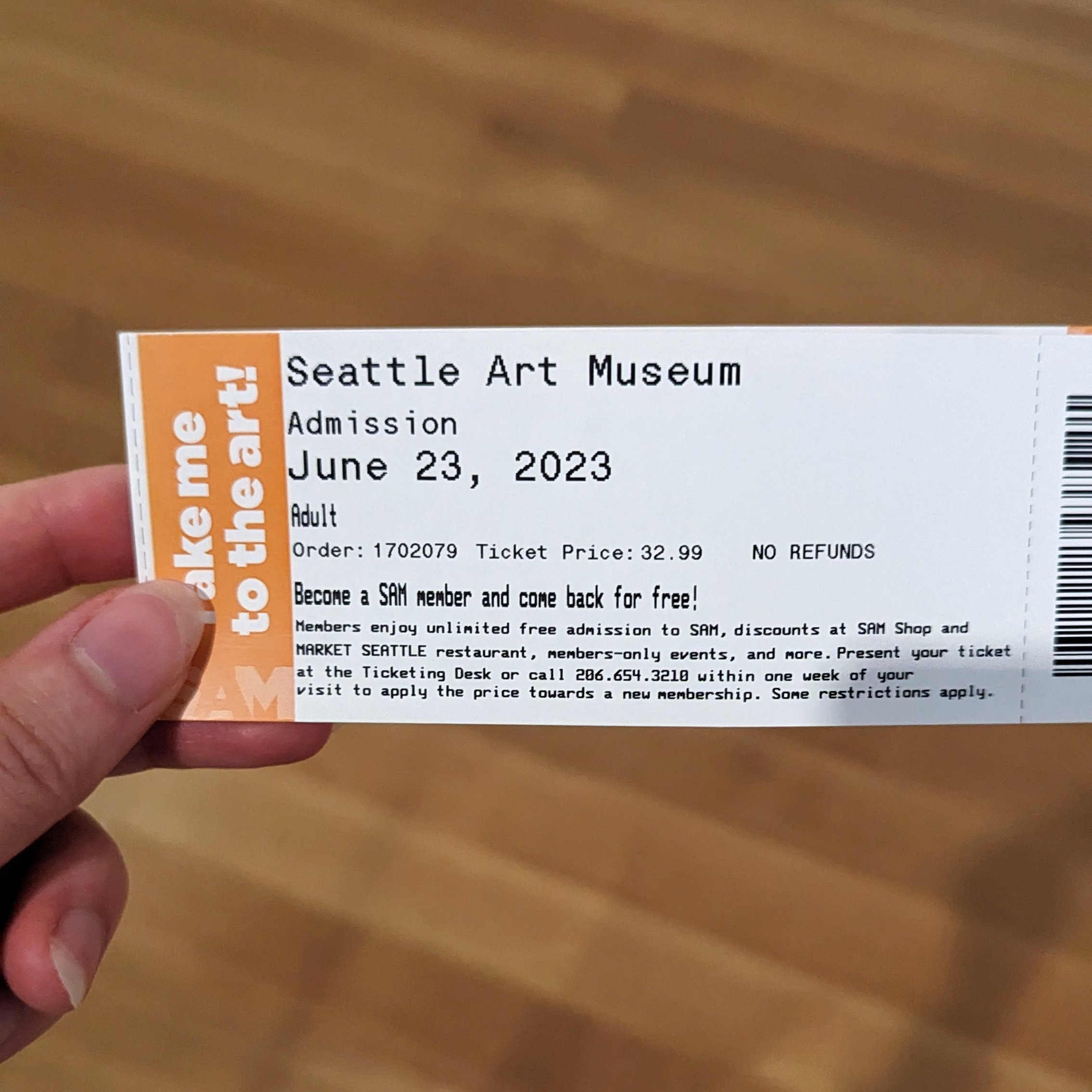 My ticket from the last visit~ This one was $33, some museums have Pay-what-you-can options, others will offer various discounts. Just ask!