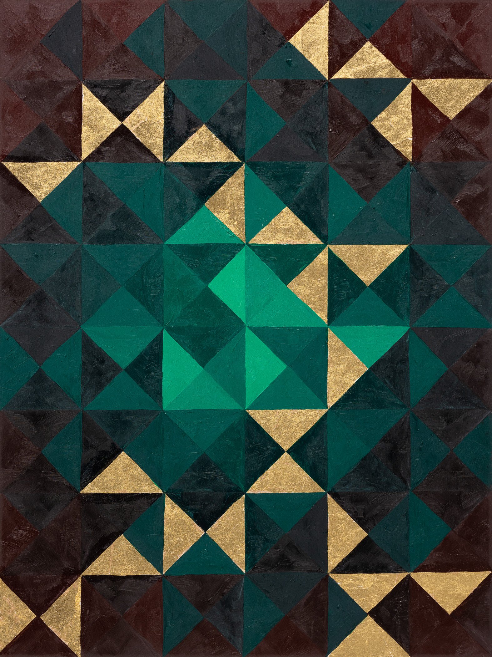 Started in late 2021, this collection of paintings have all gold backgrounds with geometric and gradient work on top. Gold leaf has an unmistakable quality of light that complements the geometric work exquisitely.
