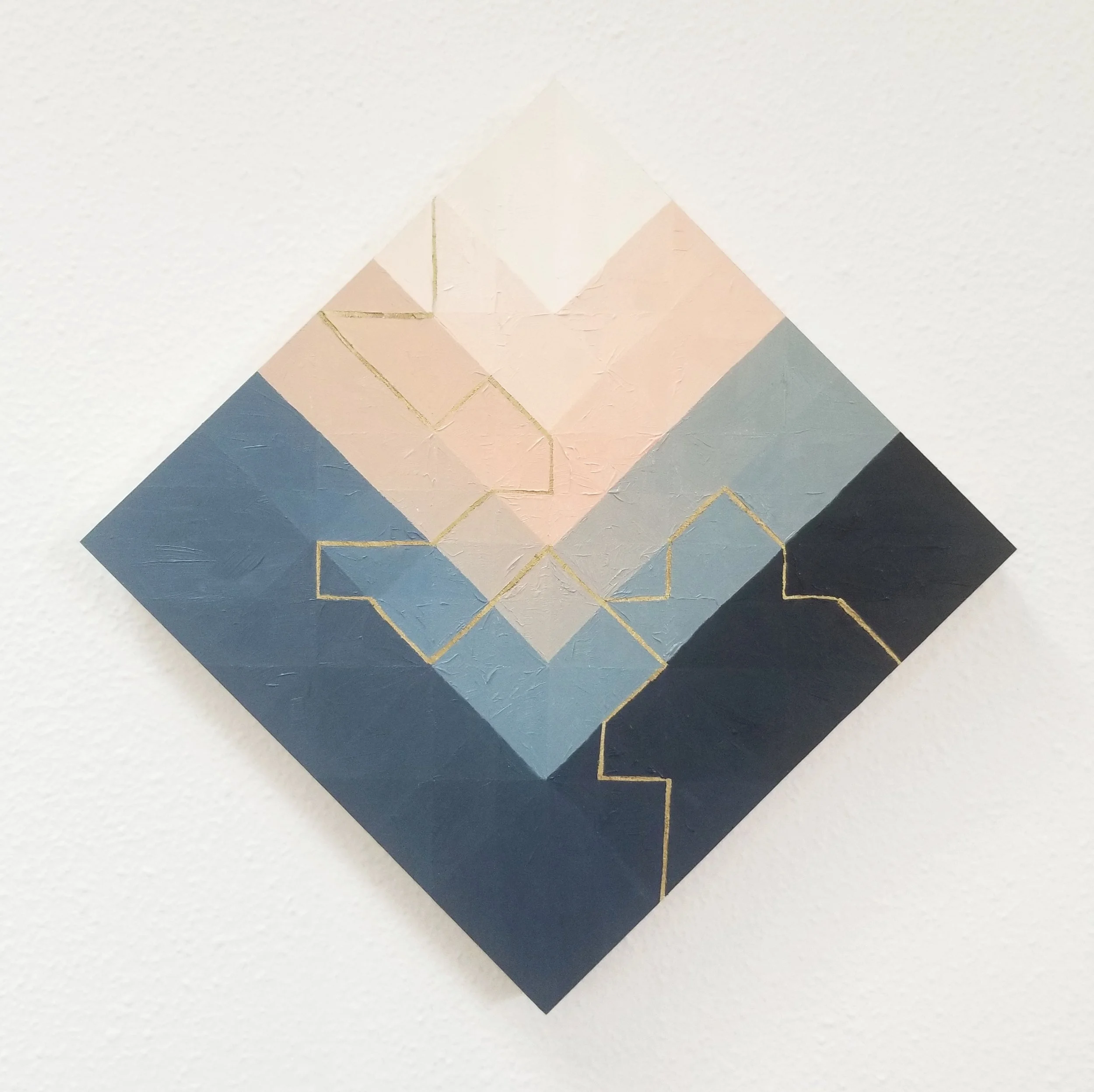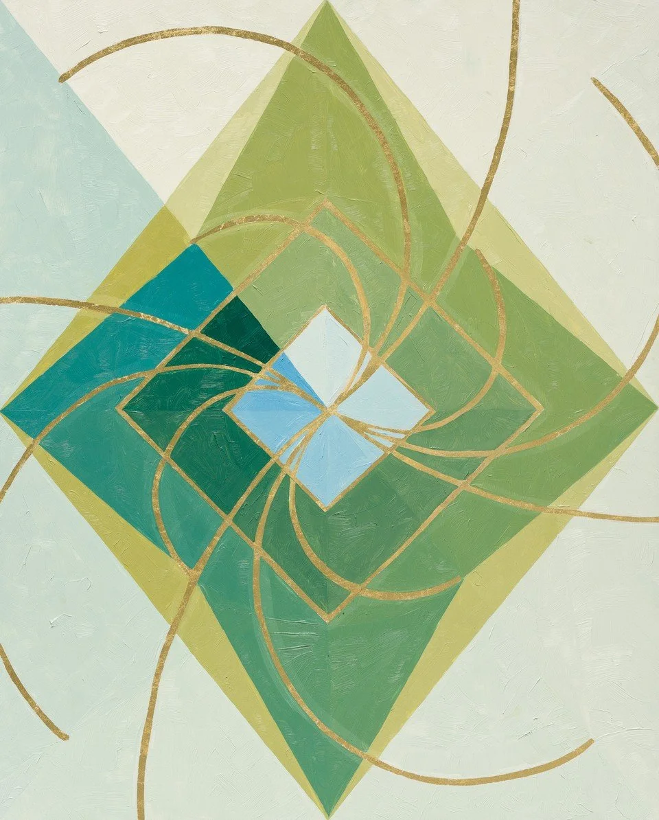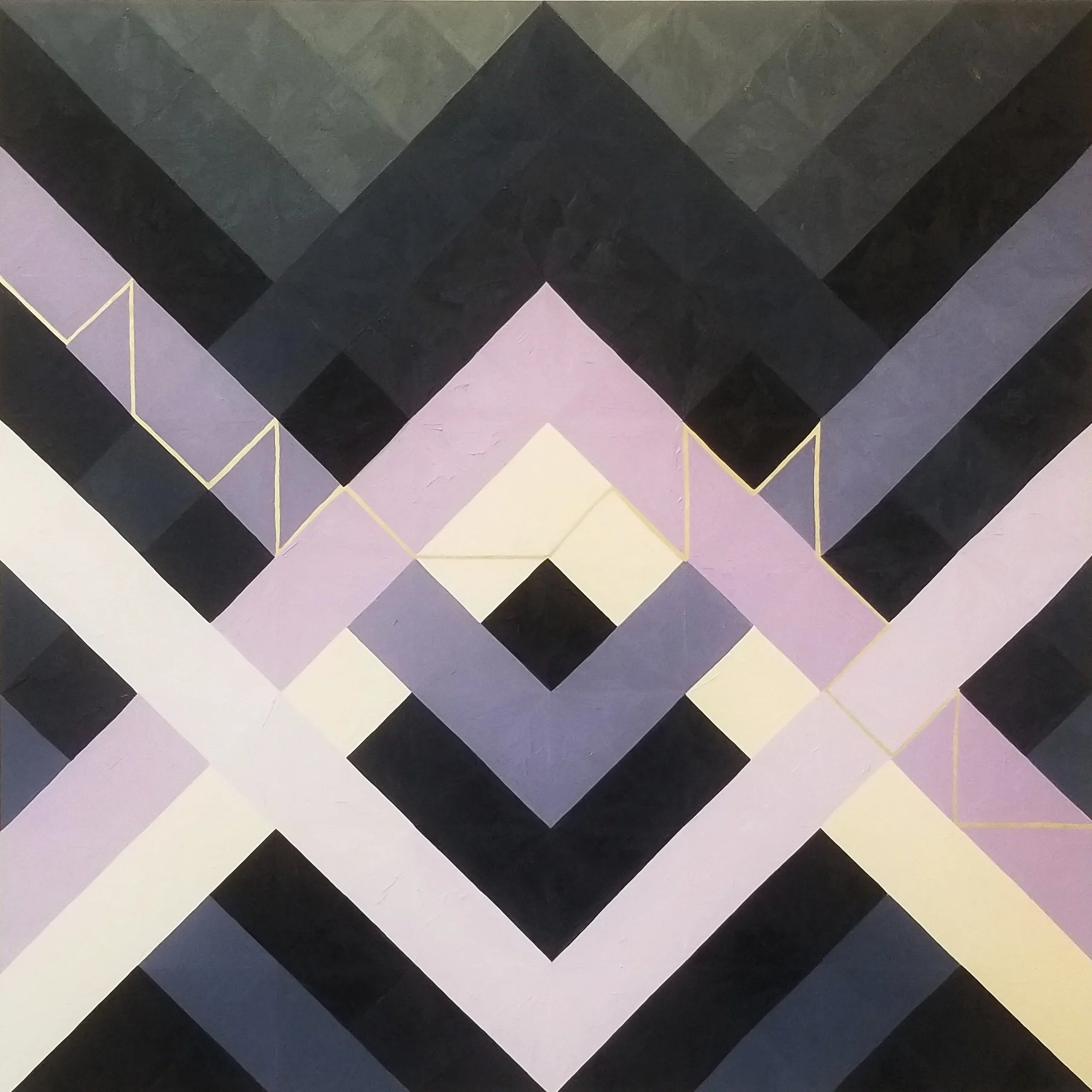 A short series working with the diamond orientation within the golden thread series. These three painting were directly inspired by my close confidants and their bright personalities.