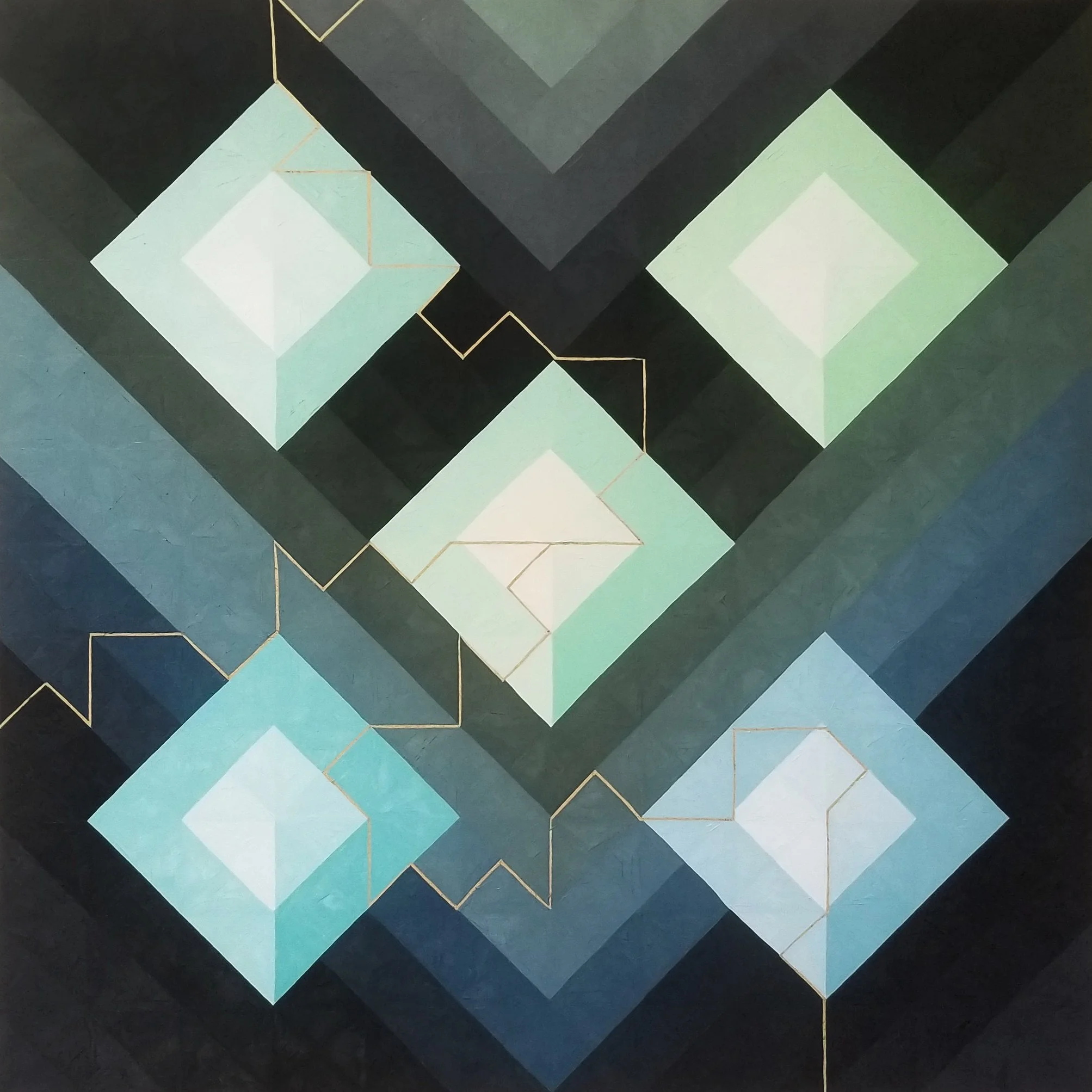 An ongoing collection since 2020 featuring gold leaf details amongst gradient geometry.