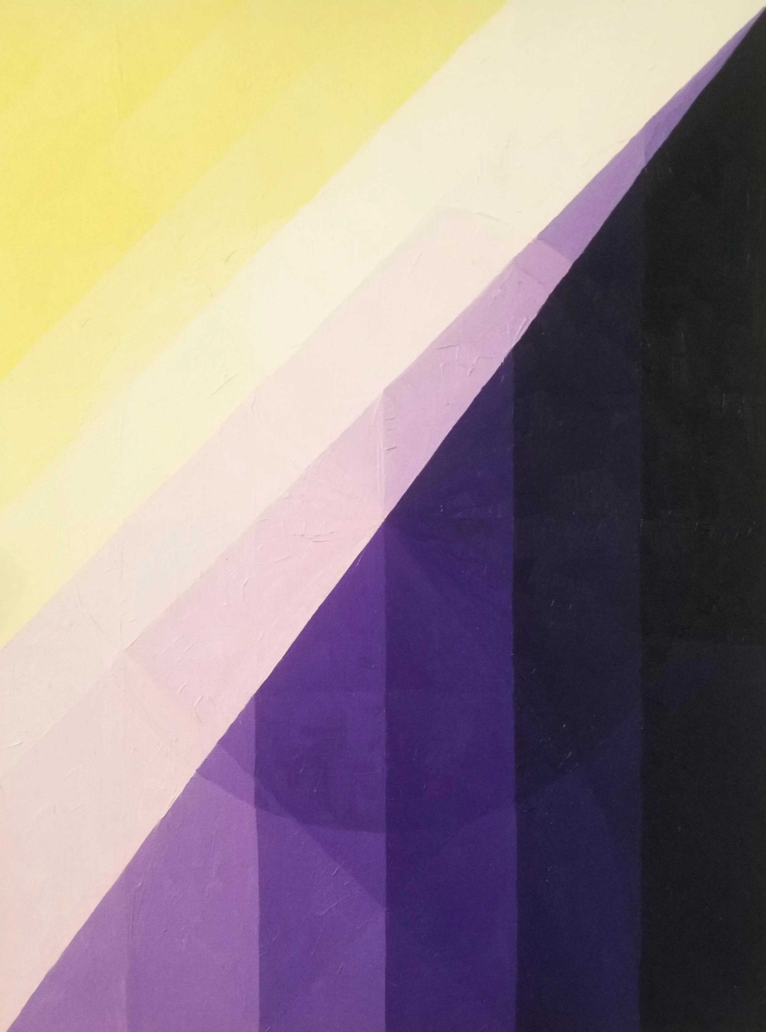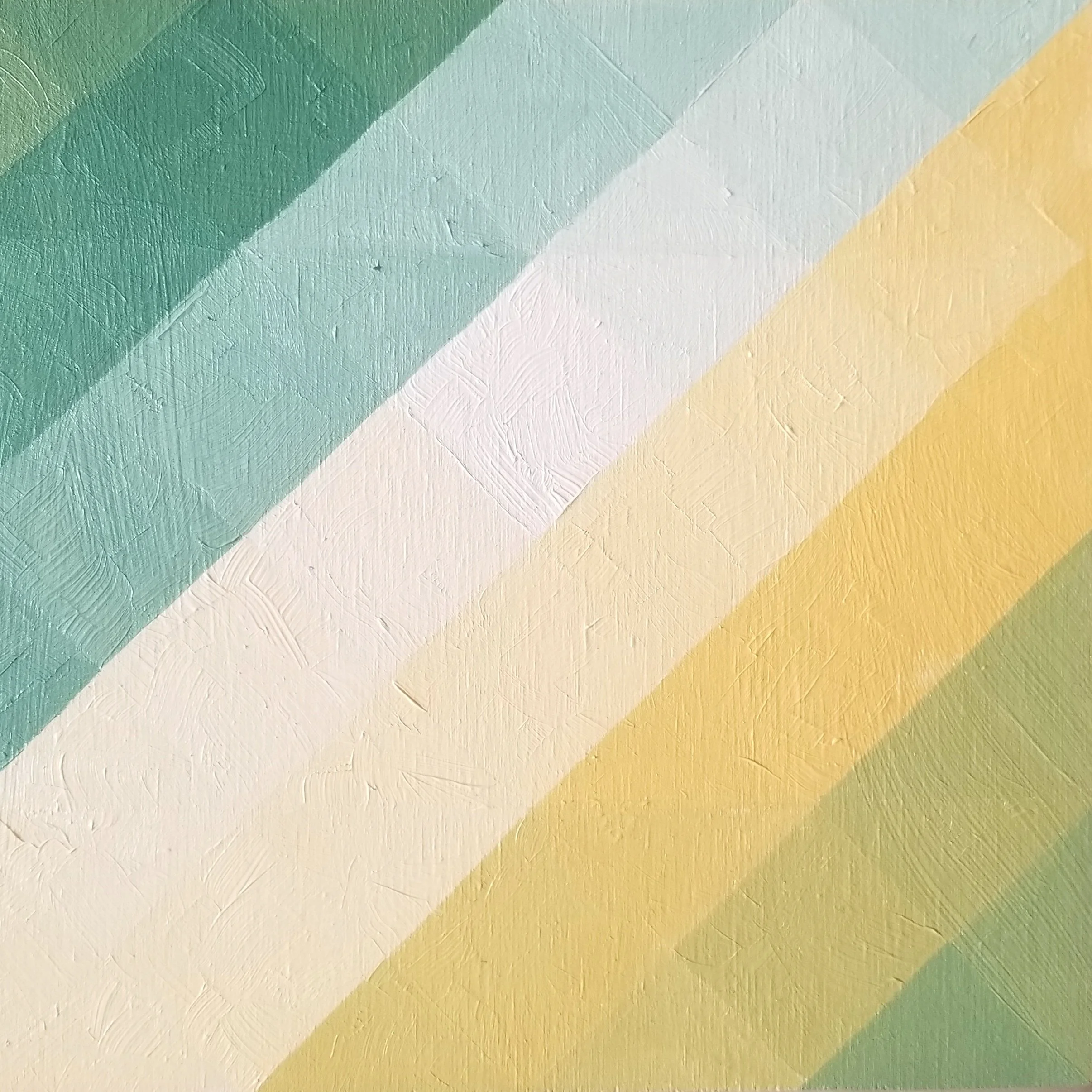 “I’m struck by the relationship of two colors that are barely indiscernible from each other. At first glance these gradient paintings seem like a smooth transition of color, but the brush strokes will tell you that each of these paintings are made up of hundreds of triangles: each uniquely mixed. ”
